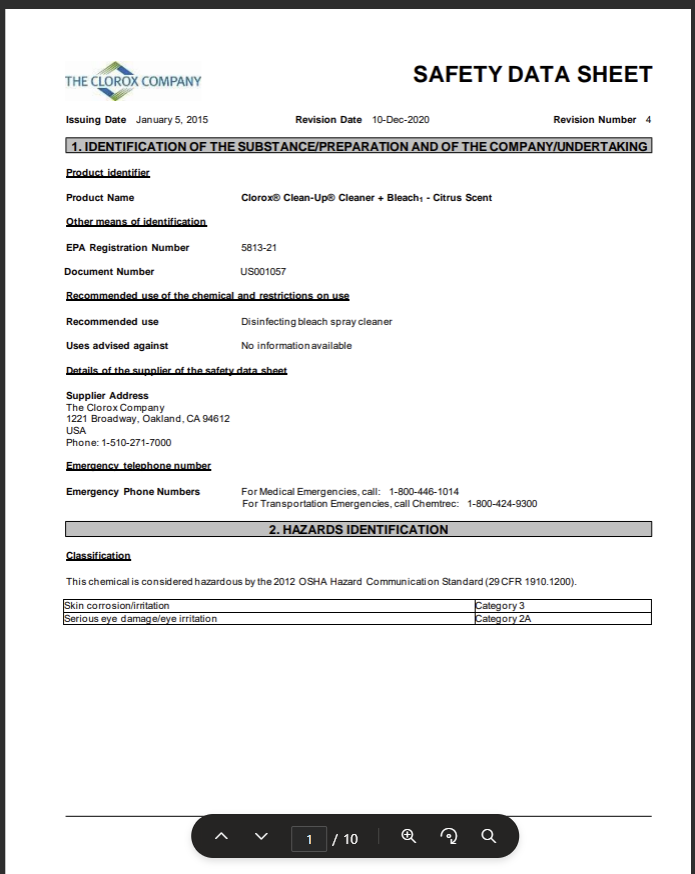 Clorox Bleach Spray Christy Hanks June 02, 2025 16:51 Updated Follow Clorox Bleach Spray clorox clean up.pdf 2 MB Download Comments 0 comments Please sign in to leave a comment.