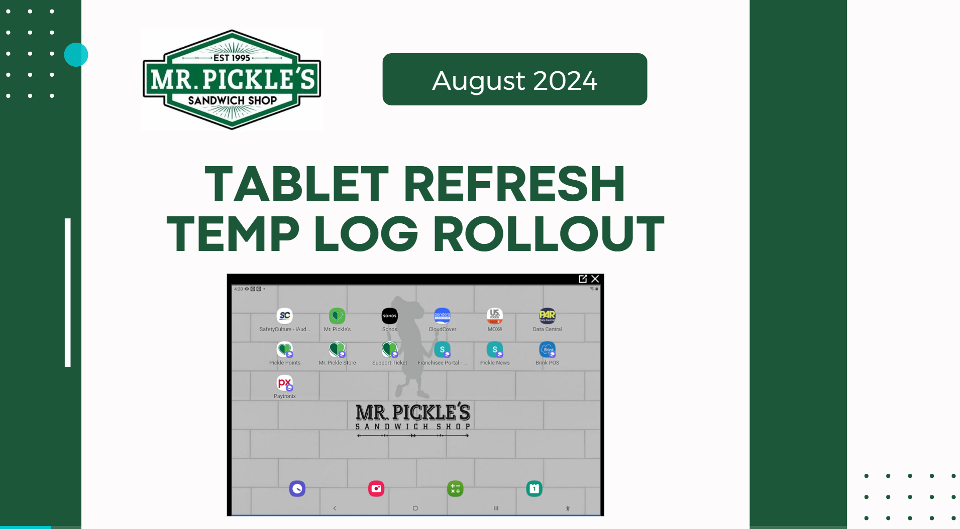 August 2024 - Tablet Refresh, Temp Log Christy Hanks August 15, 2024 23:00 Updated Follow Powerpoint Recorded Webinar Bluetooth Thermometer Video Comments 0 comments Article is closed for comments.