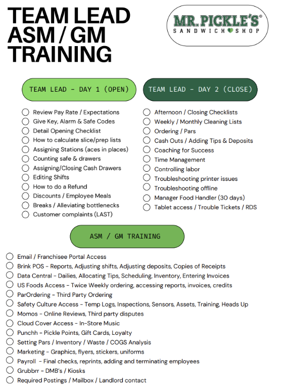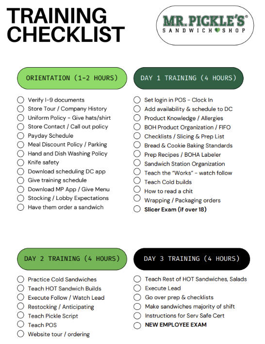 Training Checklist - Updated 10.6.25 Christy Hanks October 06, 2025 14:32 Updated Follow Checklist Related articles Sammie Training March 2025 - Grubbrr Kiosk Presentation June 2025 - New Wraps and DMB Refresh Buffalo and Chicken Fajita Wraps - Updated 6.12.25 Batch Cooked Bacon - Updated 3.7.25 Comments 0 comments Article is closed for comments.
