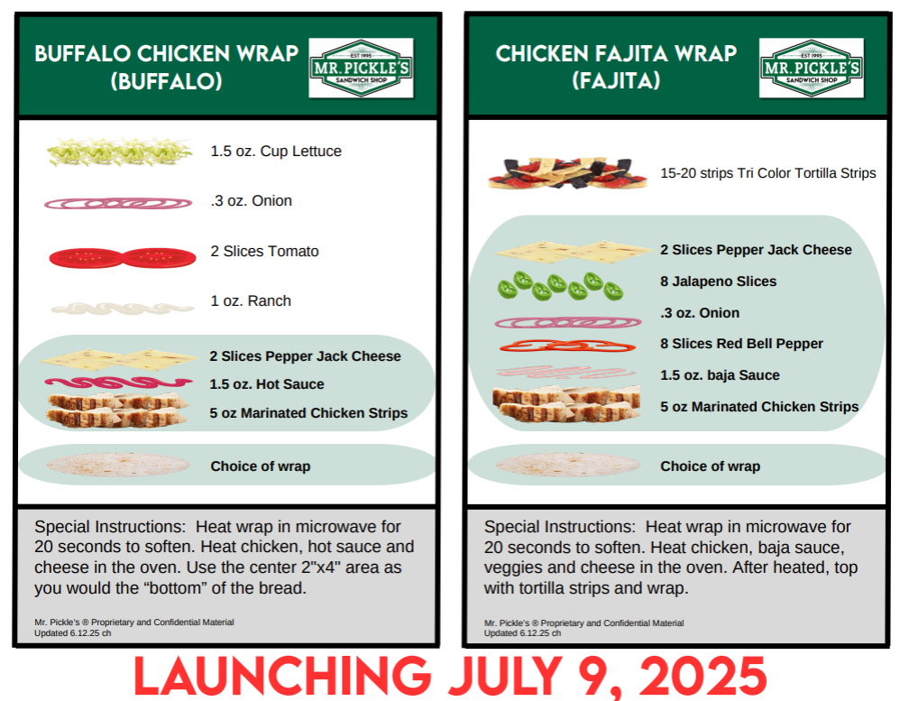 Buffalo and Chicken Fajita Wraps - Updated 6.12.25 Christy Hanks June 12, 2025 18:18 Updated Follow Buffalo and Chicken Fajita Wraps Related articles Summer Love and Chicken Cranberry Wraps - Updated 6.12.25 June 2025 - New Wraps and DMB Refresh Food Handler's Card Fourth of July - Closing Early 6pm Scanner Barcodes - Updated 1.30.26 Comments 0 comments Article is closed for comments.